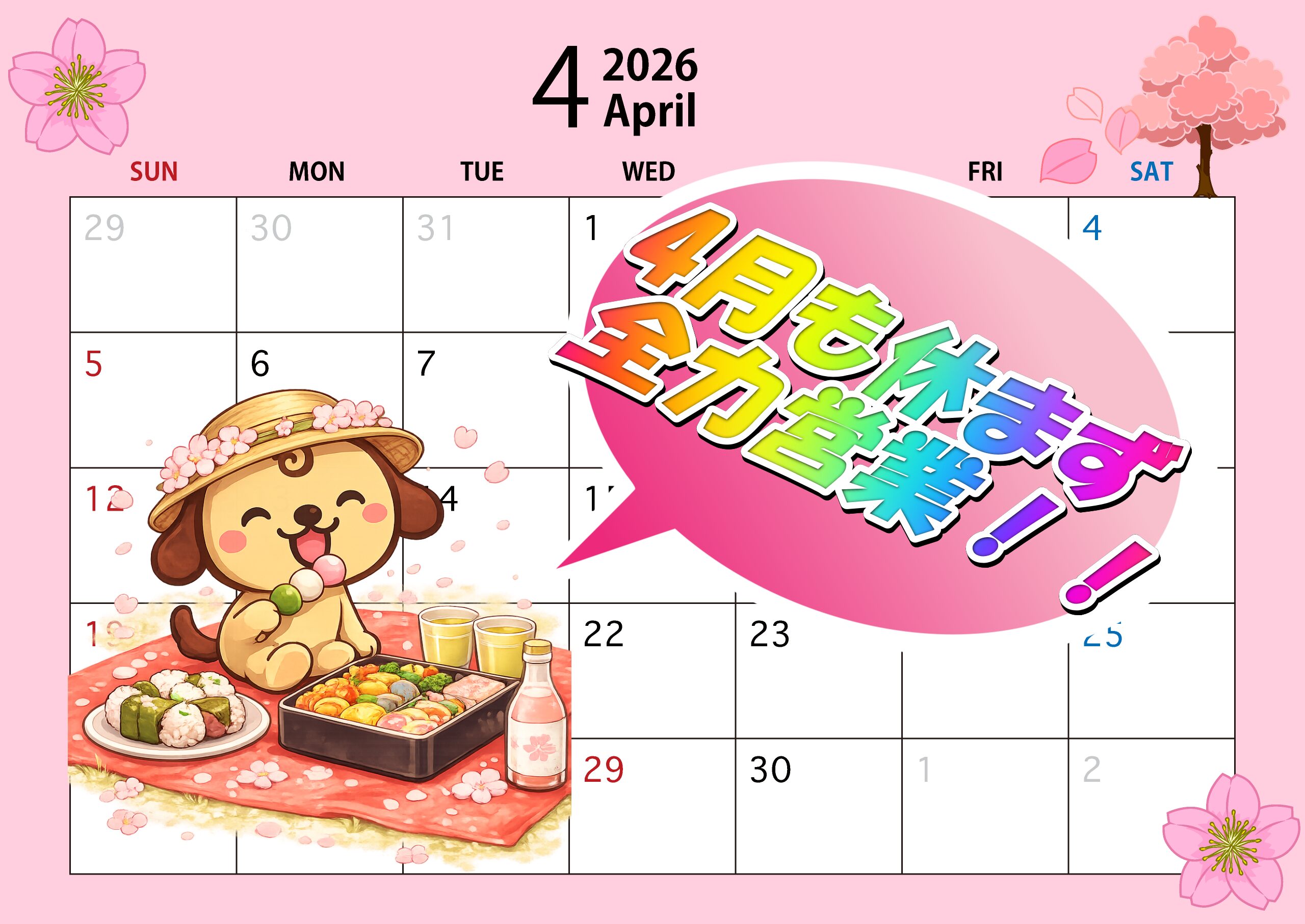 4月は休まず営業します!! 😀